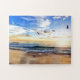 Sozinho na areia, ouro pelos primeiros raios solares, os únicos sons são os chamados dos pássaros acima e do surf-forte. A luz é brilhante e o céu é um azul profundo com nuvens brancas e douradas. Esta adorável quebra-cabeça também está disponível em uma perspectiva ligeiramente diferente apenas em grande tamanho se você quiser conferir.