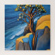 Serenidade do Vento Uma Árvore Solitária Superando o Mar do Azure a partir de Recortes Costeiras Sunlit