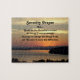 quebra-cabeça de quebra-cabeça de 10 x 8 polegadas que apresenta uma imagem cênica do pôr do sol brilhante, laranja, e das palavras inspiradoras da Oração Serenidade. Um tamanho perfeito para enquadramento!