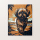 Design de arte gráfica colorida de shih-tzu em uma praia tropical com palmas. Um presente incrível para o dono de Shih-tzu e o amante de Shih-tzu.