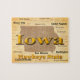 Imagem de papel antiga envelhecida do orgulho do estado de Iowa que inclui a silhueta do mapa com cidades, cidades e apelido.