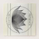 PACIÊNCIA E RESILIÊNCIA Ilustração floral elegante de um lótus solteiro isolado em forma circular. Cores principais desta design: marfim, preto e branco. Marcadores de posição de texto personalizáveis. Encontre outros belos modelos de flores de arte na minha coleção de QUEBRA-CABEÇA JIGSAW no Zazzle!