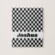 Um quebra-cabeça único, legal, personalizado, único, tem um design de sinalizador preto e branco na frente. Personalize este item alterando o nome para o que você quiser. Isso seria um presente excelente para o entusiasta do carro de corrida em sua vida. Consulte nossos outros itens de sinalizador de verificação personalizados e presentes. Se precisar de ajuda para personalizar este item, envie-me um e-mail para gmail.com. Obrigados para passar. ©Karen Hall