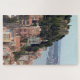 Belo quebra-cabeça com a Linha Céu de Watercolor de Lisboa, Portugal #8550 apresentando Ruas. O castelo de George e os edifícios pastel em Lisboa, Portugal.