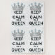 SlipperyJoe's keep calm rainha coroa de prata polida brilho metálico cravejada com pedras preciosas azuis e brancas tipo de letra limpo pesado e moderno aparência ligeiramente tridimensional maneira campy divertida e glamorosa distinto estilo real auto-afirmativo presente artístico LGBTQIA orgulho gay ousada reviravolta luxuosa tom celebratório e empoderador exala confiança