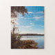Sobre a foto do lago tirada em pé na costa olhando para fora do lago criou em um quebra-cabeça de quebra-cabeça para entretenimento familiar.