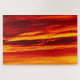 Este design apresenta uma imagem de nuvens em vários tons de amarelo e laranja sobre um fundo vermelho. É uma bela cena do pôr do sol.