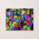 Um abstrato sonhador em tons vívidos de amarelo, verde, rosa, roxo, azul, turquesa, laranja, preto e muito mais.