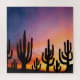 Jigsaw Puzzle tabletop hobby craft and decorative wall hanging art decor printed with a Southwestern Desert Landscape Cactus Sunrise Image mixed media graphic art design illustration by TheFabricSeal at Zazzle #ZazzleMade https://www.zazzle.com/store/thefabricseal