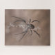 Um quebra-cabeça de serra com foto de uma aranha em uma teia.