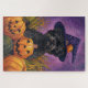 Quebra-cabeça Spooky Affenpinscher Halloween Witch e Pumpkin