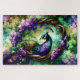 Quebra-cabeça Stained Glass Peacock Floral Wreath Art