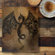 Fundo de pedra castanha com dragão tribal a tinta preta.