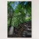 Stone steps climb gently through tropical forest, worn smooth by time. Moss and leaves soften the edges. Subtle color variation adds texture without distraction. The wooden steps travel downward to the turquoise pools. Each choice will bring you to beauty, and awe.This puzzle evokes a quiet forest walk.
