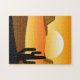 Quebra-cabeça em paisagem minimalista e moderna do deserto e mesas do Sudeste, em tons de laranja, ouro amarelo e marrom
