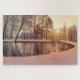 Quebra-cabeça Sunset sobre parque com lago congelado pequeno