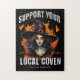 Design escuro e místico com uma bruxa poderosa em um pano de fundo fervoroso com o slogan "Suportem seu forno local." Perfeito para o Halloween, amantes de bruxaria, fãs de moda gótica, e qualquer um que abraça uma vibração mágica e assustadora.