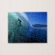 Quebra-cabeça do jogo mostrado com um impressão da foto de uma cena bonita do surfista do oceano. Personalize este artigo ou compre-o como é. Armazene a imagem