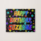 Esta divertida e excitante design de quebra-cabeça de quebra-cabeça com tema de aniversário tem a mensagem "HAPPY BIRTHDAY, SUZANNE" com os personagens que têm um espectro colorido de arco-íris inspirado em um padrão de gradação, junto com um padrão de fundo de campo vivo. Um quebra-cabeça excitante como este pode ser uma maneira divertida de enviar cartões de aniversários a alguém chamado Suzanne. [~Z0000468]