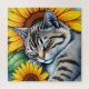 Quebra-cabeça Sweet Napping Gray Cat and Sunflower