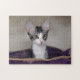Quebra-cabeça Tabby Kitten em uma cama roxa