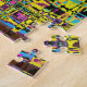 Este desafiador quebra-cabeça de quebra-cabeça lança uma tapeçaria abstrato em uma variedade de tons de azul, rosa, roxo, amarelo, verde, preto e muito mais!