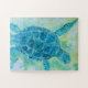 trabalho de arte de aquarela tradicional de uma tartaruga marinha azul nadando no oceano como quebra-cabeça decorativa
