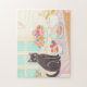 A purr-fect gift for cat and tea lovers everywhere. Enjoy a cozy winter moment with this delightful black cat jigsaw puzzle that features our attentive host, tea pot (with treats!) and some pretty flowers to accent it all! Definitely ideal for cat lovers, tea lovers, and cottagecore fans. This puzzle makes a thoughtful holiday gift for anyone who enjoys relaxing, mindful activities, especially during some winter downtime and family nights. Plus, the charming jigsaw can be personalized with a special name and/or quotes.