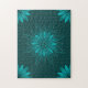 Quebra-cabeça Teal Leaf Mandala Design on Dark Cyan