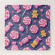 Cute teddy bears and candy on blue background pattern design.