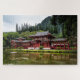 Belo e sereno quebra-cabeça de cena do templo japonês vermelho.