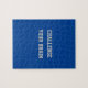 O quebra-cabeça é azul profundo. É quase uma cor sólida. Você pode editar o texto de exibição. O texto da cinza diz "Desafie seu cérebro".