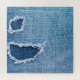 Quebra-cabeça Textura do tecido denim rasgada, matizes azuis.