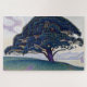 neo-impressionist pointillist landscape painting depicting a dark rich bold green pine tree by the sea, in Saint-Tropez, France, in the Provence-Alpes-Côte d'Azur region