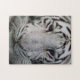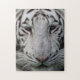 Um tigre branco bonito que olha me em nosso jardim zoológico local.
