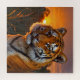 Sobre "Tigre do Tigre" - Uma bela mulher Tigre gosta do último calor do pôr do sol, esperando por uma chance de caçar.