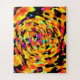 Este abstrato em negrito está girando com as cores do tigre de laranja, amarelo e preto com pistas de verde limão, rosa e turquesa.