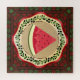 Nesta arte vibrante e evocativa, o artista misturou magistralmente elementos da cultura e simbolismo para comunicar apoio inabalável às pessoas de Gaza. A composição é um testemunho visual da resiliência, do patrimônio e da esperança que persiste apesar dos desafios. fornece uma poderosa mensagem de apoio e solidariedade para Gaza, misturando maravilhosamente o simbolismo e as cores vibrantes. No centro da composição Uma fatia de melancia sobre uma placa de oliveira com um fundo palestiniano vermelho e verde bordado de padrões palestinianos tradicionais. Esta design é para todos aqueles que apoiam a liberdade e a justiça e lutam contra a injustiça. A todos os partidários da justa causa palestiniana. Levante e apoie a libertação da Palestina e de Gaza e o estabelecimento da paz em Jerusalém. Projetado pelos designers do Peace Lover. Parem com o conflito entre Palestina e Israel. As vidas palestinas importam.