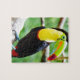 Este toucan lindo empoleirado em um ramo e levantado para mim na floresta húmida de Costa Rica.