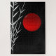 Vermelho e preto branco. O sol vermelho, branco preto, tem árvores de Bambu e sol vermelho em círculo preto, desenhado à mão com tinta na tradicional pintura japonesa.