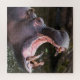 Na imagem, o fechamento de um hipopótamo mostra sua presença imponente, com mandíbulas largas e abertas revelando dentes enormes. Esta fotografia captura o poder bruto e a beleza primitiva deste icônico mamífero africano.