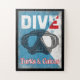 Turks & Caicos vintage scuba mask design poster de viagens. Um fundo de sinalizador azul e branco com uma máscara de mergulho e a palavra "Mergulhar" no topo.