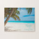 Belo paraíso da praia tropical com mar e palmeira turquesa torcendo sobre a impressionante areia branca. Sonho em relaxar e apreciar esta cena idílica enquanto você junta esta Quebra-cabeça de Jigsera tantalizante. Fácil de personalizar com seu próprio nome, texto inicial e breve em tipografia de fontes decorativa.