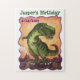 A Quebra-cabeça de Festa de aniversário Personalizada de Tyrannosaurus Rex da Parada Animal apresenta nossa arte original de um divertido dinossauro TRex que se encontra numa paisagem pré-histórica marrom cheia de um vulcão fumante. Atrás do dinossauro branco está um céu amarelo texturizado, laranja e uma bela e tortuosa borda roxa. Este dinossauro fofo de frente e de trás em muitos produtos foi pintado pelo nosso talentoso ilustrador infantil, Traci Van Wagoner. Jogue uma festa pré-histórica de dinossauros para seu filho apaixonado por dino hoje com nossa diversão e ideias de festa e presente do TRex Dinossauro. Tenham uma festa de piadas! Rawr!