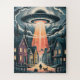 Quebra-cabeça UFO Abduction Night Street Illustration