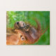 Quebra-cabeça Um bebê orangotango bonito olha em maravilha