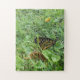 Um Quebra-cabeça Vertical, 30 Peças Sobredimensionadas, com uma Imagem de uma Linda Borboleta Monarca, deitada na grama.
