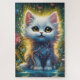 Un mignon chaton blanc avec des touches de couleur rose et bleue est un dessin numérique. Il pose dans une forêt enchantée en tirant la langue. Son aspect facétieux contraste avec cette lumière qui l'entoure et donne l'impression que c'est un ange. Cadeau idéal pour toutes les occasions : anniversaires, fêtes, fêtes des parents, cadeau à offrir, à se faire offrir ou s'offrir...