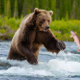 Este quebra-cabeça de serra de guisado do urso Grizzly, que pesca salmão, oferece um hetero de imagem de tiro de ação a partir de uma série de documentários sobre a natureza. Um urso-pardo maciço, parado em um rio que corre, é congelado no tempo enquanto ele nada em um salmoura. Uma imagem vibrante e cheia de ação destacada contra um fundo pacífico de uma floresta densa de pinheiros altos. Esta quebra-cabeça de urso pardo certamente agradará e atrairá todos os amantes dos ursos pardos, especialmente aqueles que amam quebra-cabeça da natureza.