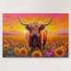 Quebra-cabeça Vaca Highland no Campo de Girassóis no amanhecer